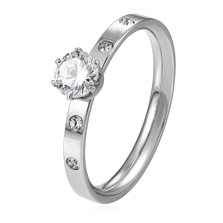 Nhẫn Titan - TC101 - 1 hột đứng màu trắng