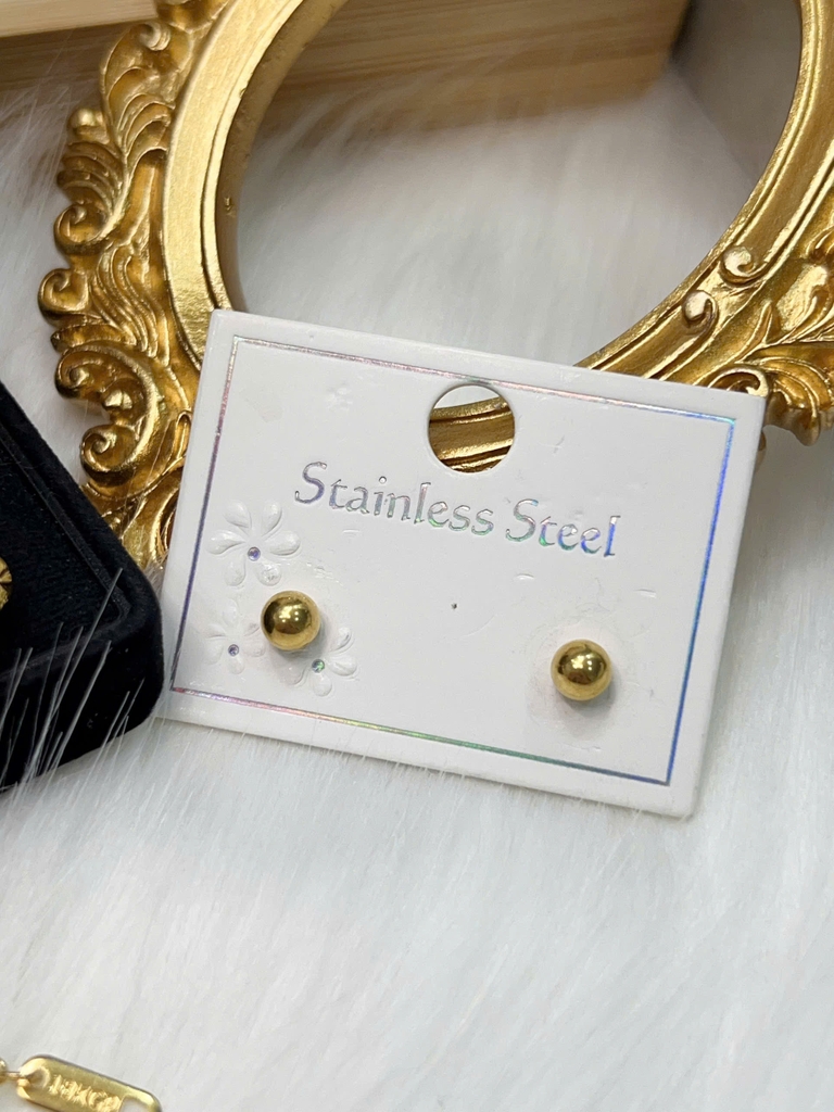 Set trang sức Titan - dây chuyền bi 6ly khắc máy & bông tai bi 5ly