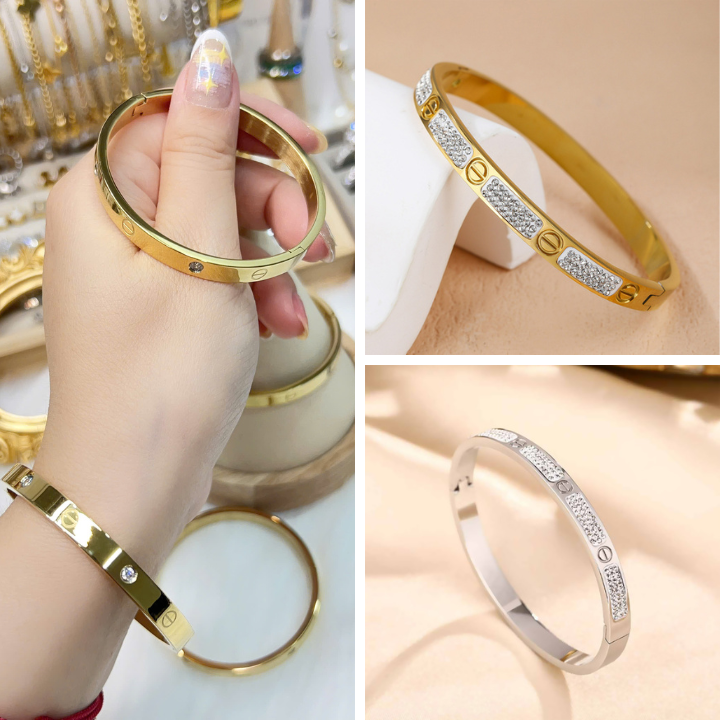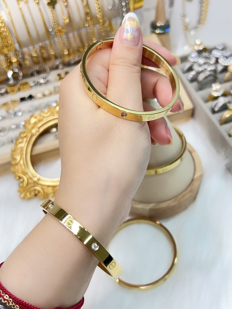 Vòng tay Titan - TV2223 - vòng Cartier đính đá form tròn ni 52 có khóa